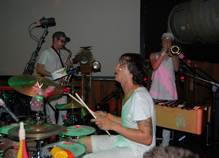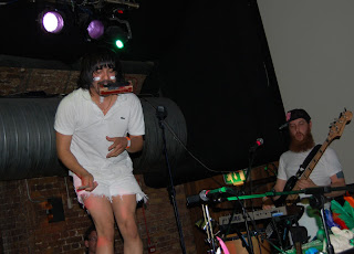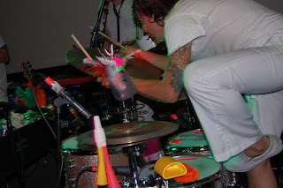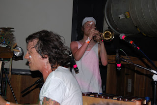 cargo (rivington st, shoreditch) klub sasiaduje z galeria BlackRatPress w ktorej to w zeszlym tygodniu odbyla sie wystawa francuskiego artysty Blek leRat tworzacego graffiti szablonowe nota bene dzialajace od ponad 20 lat, czesc prac widac w ogrodku klubu oraz przed wejsciem do klubu. Sam klub okej, sporo kanap i foteli, stanowisk stojacych w stylu dawnych polskich barow dworcowych oraz przyjemny ogrodek. Przed manmanem zagrali lokalni elektro-indie-pop-disco-punkysranky żygacze cyfrowymi dziwkami z maca, mozna by sie skusic o stwierdzenie ze kazdy moze. Humory wskoczyly, na sali cieplej. Na scene wyszli chopcy z filadelfi cali na biało, 'sie zaczło....' bierzemy dobry soczysty kawalek Toma Waitsa siekamy razem z Nickiem Cavem i dusimy na cyganskiej patelni Franka Zappy, w miedzyczasie wyglupiamy sie z maluchami na wystepie trupy cyrkowej Bregovica wychowanej na Led Zeppelin i Primus, po wystepie w akompaniamencie skocznej trabki mieszamy punkowy sos i dodajemy cymbały, dwa nieduze emaliowane garnki (prosze pamietac zeby byly emaliowane), harmonijke plastikowego szczurka, misia, indiański pióropusz i durszlak przez który wczesniej odcedzamy elektroniczne bakalie tak aby nie było zakwaśne, bo całość jest raczej odczynu kwaśnego. Przyprawianie ziołami według siebie juz, na tym wystepie potrawa byla bardzo aromatyczna. Koncert udany nos zapchany no i do domu wracamy, blues... chyba mam alergie na dym..